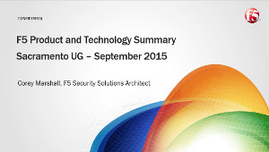 In this UserGroup, Corey Marshall covered F5 Product and provided a Technology Summary on a BIG-IP