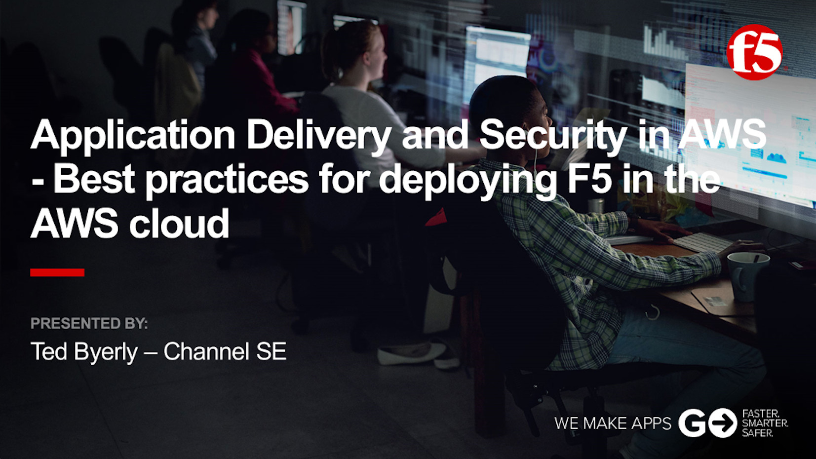 This presentation/lab covers deployments in AWS presented by Ted Byerly, Channel SE.