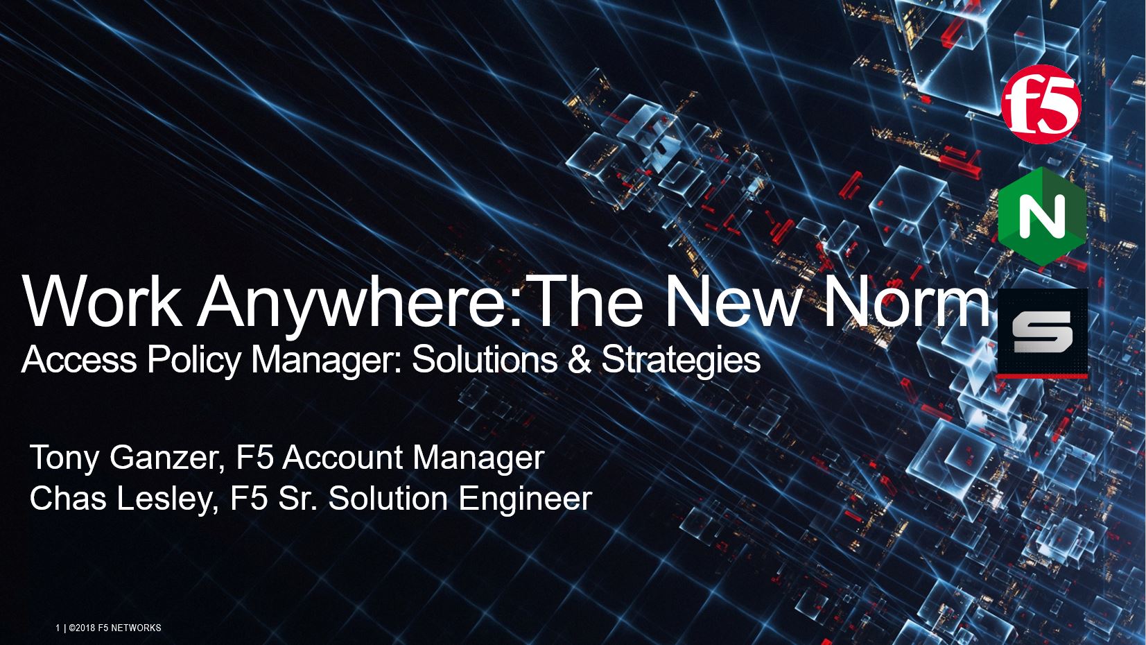 In this User Group we covered APM design strategies for VPN and VDI with additional performance guidance