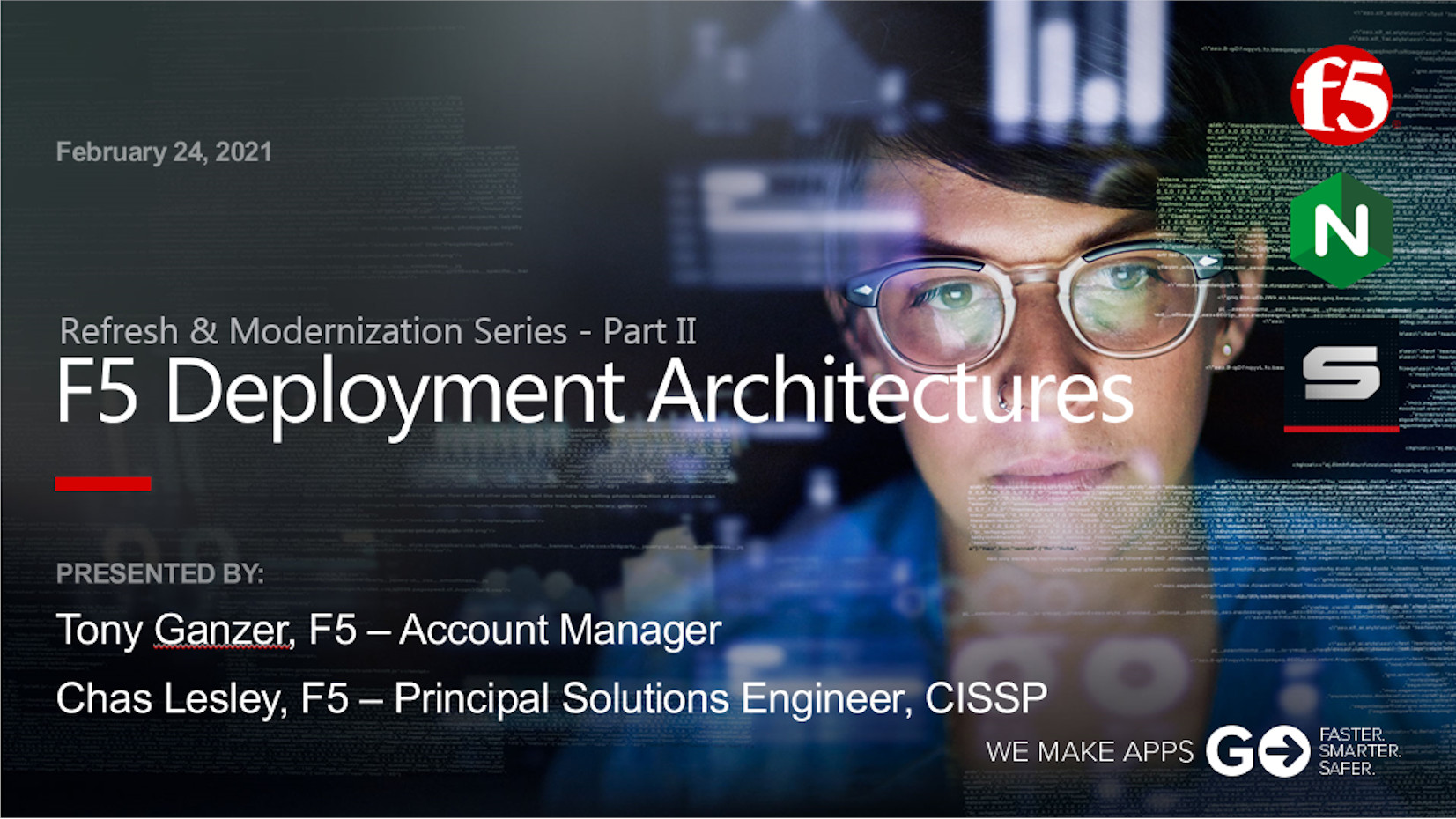In this User Group we covered F5 Refresh & Modernization architectures and the associated considerations
